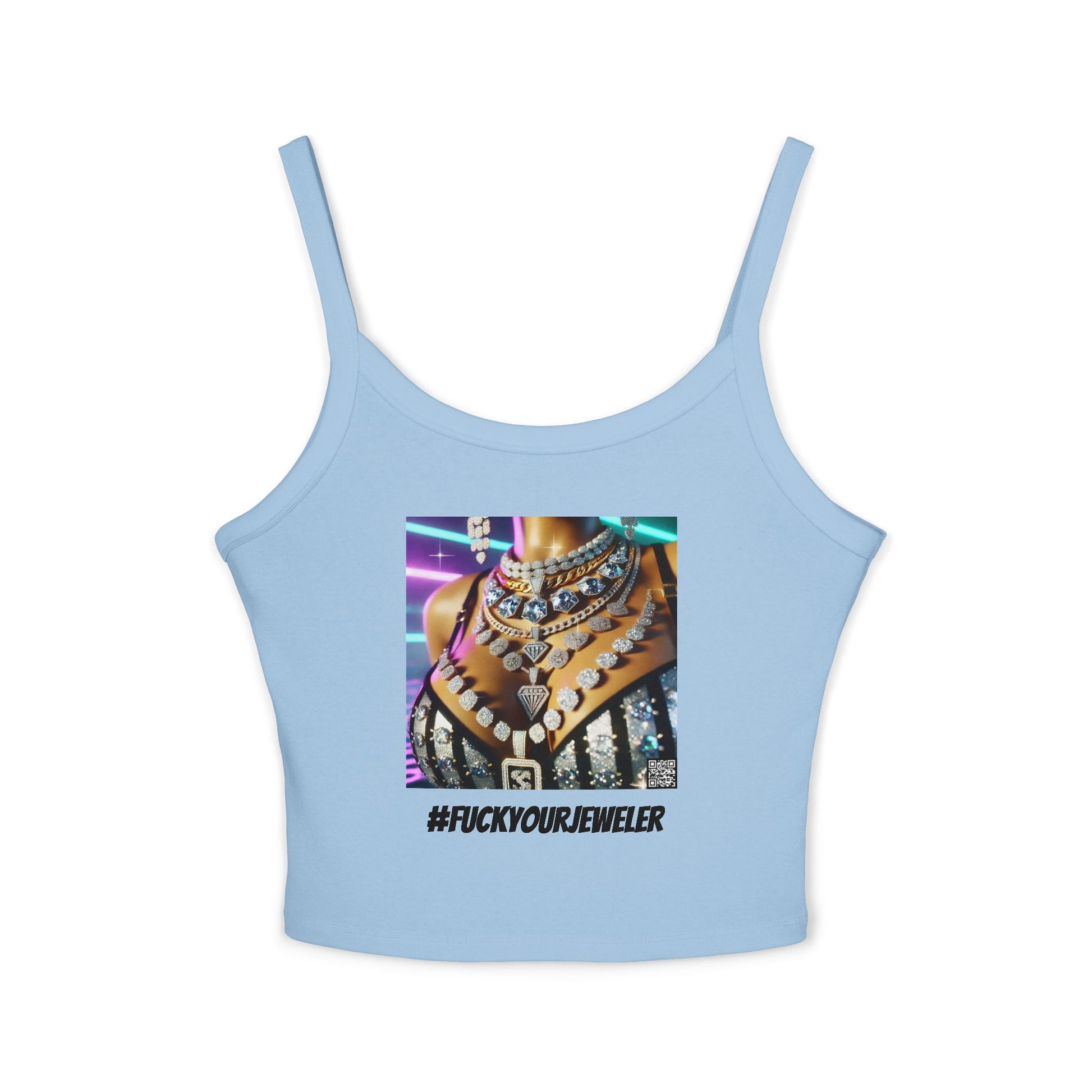 Trendy Women's Spaghetti Strap Tank Top with Bold #F#CKYOURJEWELER Print